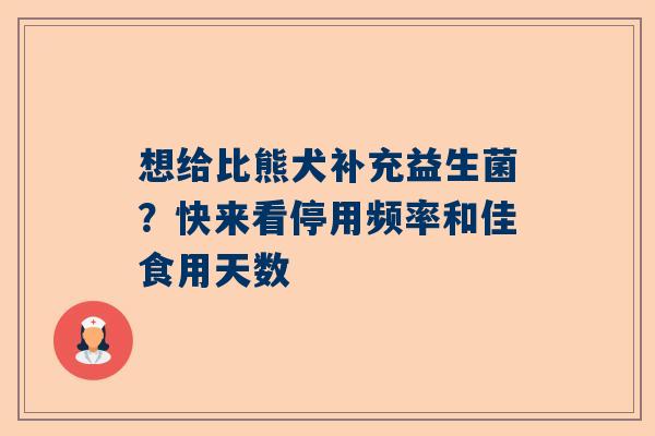 比熊犬是一种性格温和、可爱亲人的狗狗,越来越多的宠物主人希望为它们的提供更好的保障。补充益生菌就成了一种受欢迎的选择,能为狗狗的肠道、及整体状态带来积极影响。关于益生菌的停用频率和佳食用天数,许多主人可能并不清楚。接下来,我们就来详细讨论一下这一话题。