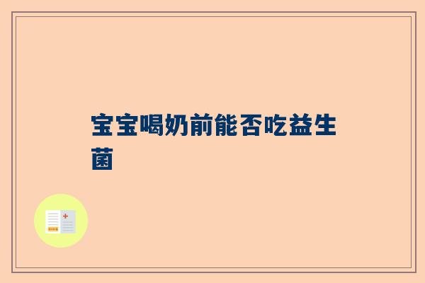 从理论上来说,宝宝在喝奶前是可以吃益生菌的。因为益生菌本身不会与奶中的营养成分发生有害的化学反应。而且,在空腹状态下,也就是喝奶前,胃酸分泌相对较少,这样益生菌能够更好地到达肠道,发挥其调节肠道菌群的作用。例如,很多宝宝在早上起床后还未喝奶时,家长如果给宝宝服用益生菌,益生菌可以更顺利地通过胃部进入肠道定植,从而更快地开始改善肠道微生态环境。